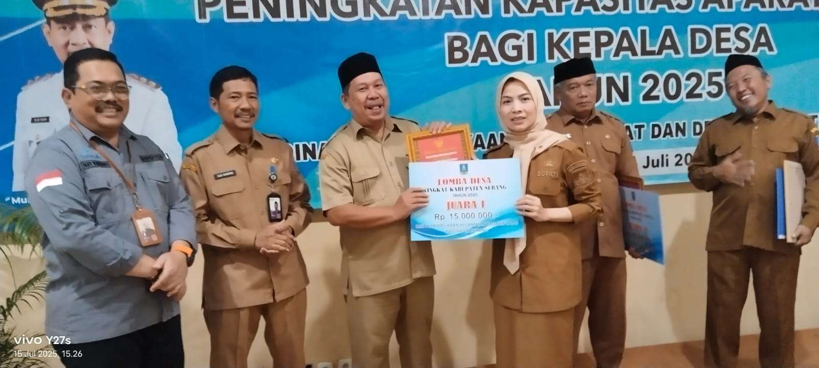 Du dalam sela sela acara peningkatan kapasitas aparatur desa se-kabupaten serang bupati serang Hj.Ratu Zakiyah membagikan hadiah Lomba Desa Tingkat Kabupaten serang di hotel Jayakarta Anyer pada hari Selasa ( 17/7/2025).