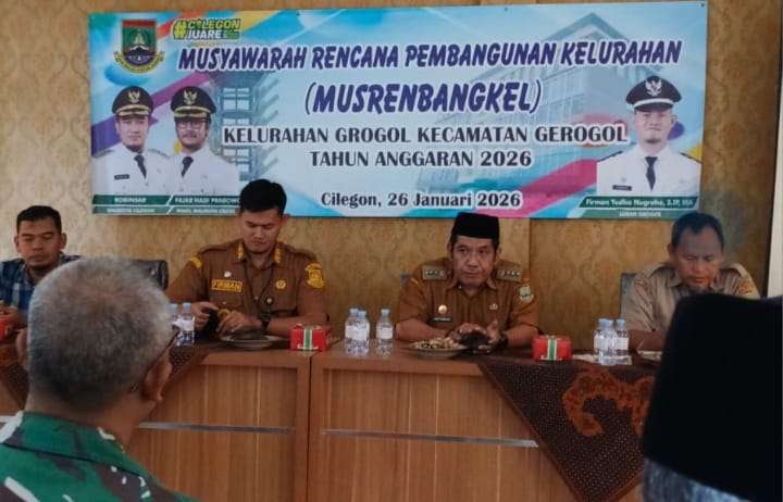 Acara Musrenbangkel tahun anggaran 2026 dibuka oleh camat Grogol Jajat Sudrajat sekaligus memberi sambutan kepada masyarakat Grogol,bahwa tujuan Musrenbangkel adalah menampung usulan masyarakat dalam rancangan pembangunan kelurahan ujar camat.