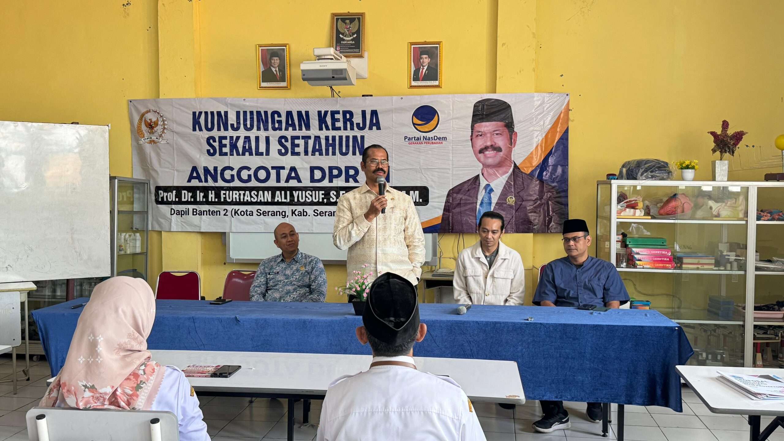 Anggota Komisi X DPR RI dari fraksi partai Nasdem Dapil II Banten Prof.Dr. H.Furtasan Ali Yusuf,SE,.S .Kom.MM, melaksanakan kunjungan kerja sekali setahun di SMPN 1 Cilegon pada hari Rabu (4/3/2026), kegiatan ini dihadiri 63 dewan guru,wali murid,serta perwakilan masyarakat.